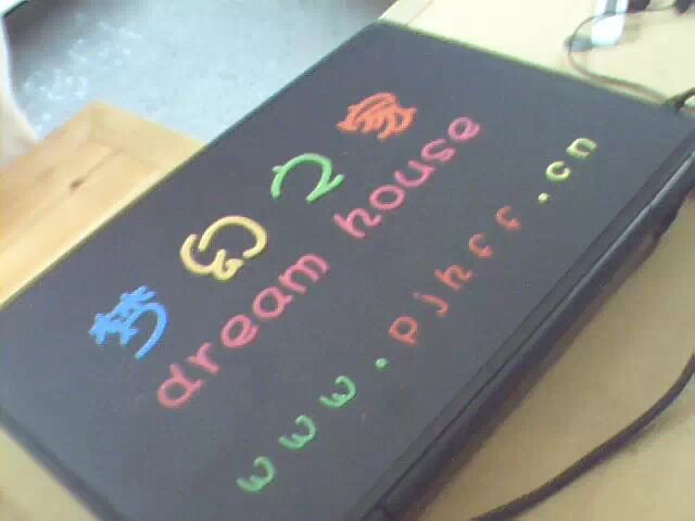 看着笔记本的外壳,手一摸,就会有摸过的痕迹,另外笔记本的手腕处容易磨损。因此我决定对笔记本进行美容。想来想去不知道在笔记本上弄什么好图片或者花纹好,突然想到了自己的个人网站,于是就用自己的网站名作为美容的主题。效果图如下: